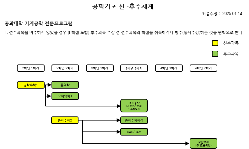 - 2004학년도 이후 신입생은 공학전문교육과정에 배정된다.