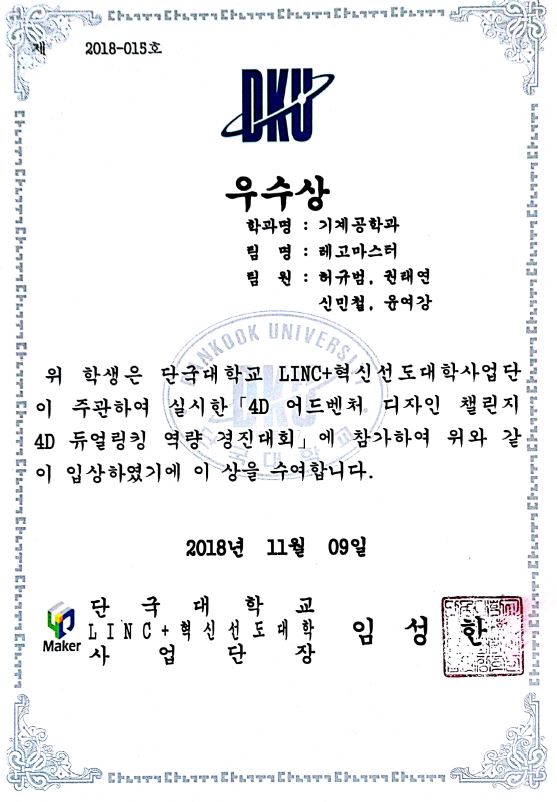 2018 Solid Edge 엔지니어링 디자인 공모전 수상 수상일시 : 2018. 10. 23 수상자 : 심정원